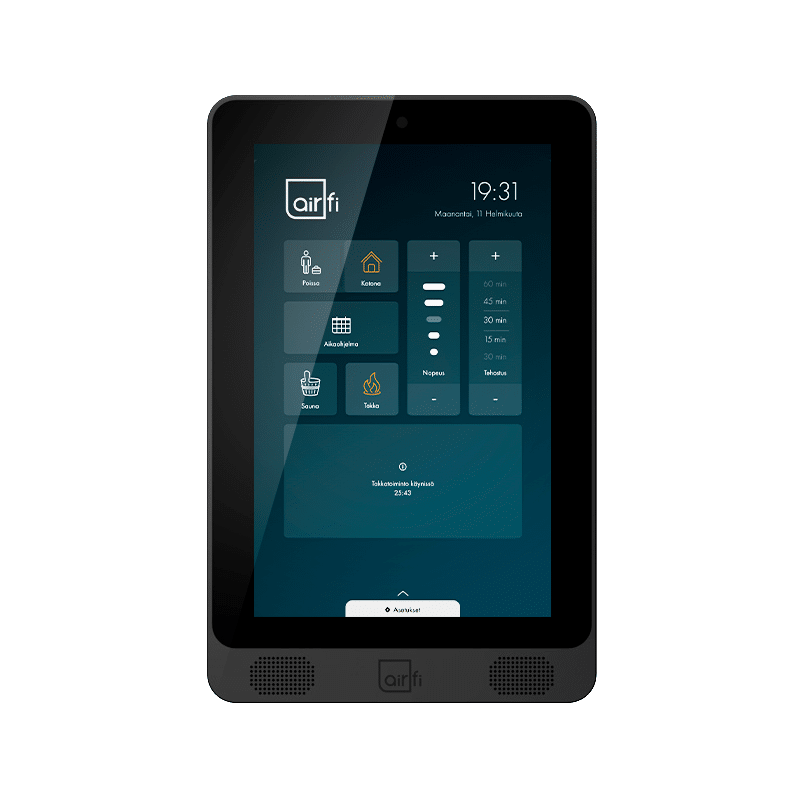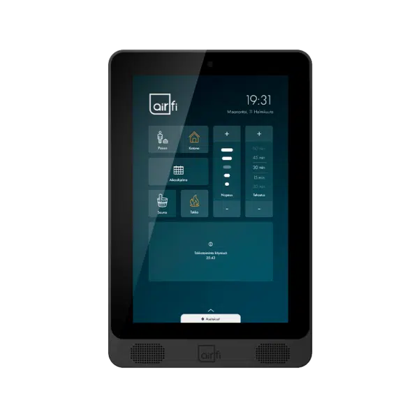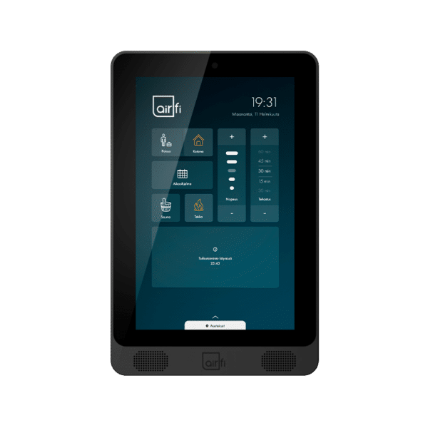 Mille WIFI is an easy-to-use modern controller with a touch screen. If you have connected your Airfi air handling unit to the internet, you will get up-to-date weather information and AHU updates on the Mille control panel display, as well as lots of other information to make your life easier.